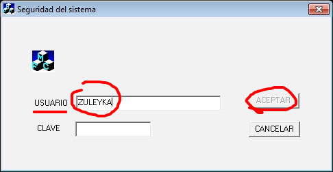 LUEGO PROCEDEMOS COLOCANDO EL NOMBRE DE USUARIO , VEMOS QUE EL BOTON ACEPTAR DEJA SE DESACTIVA